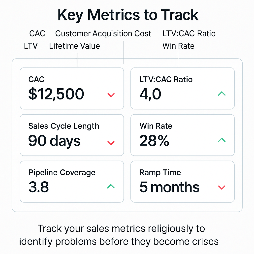 If a new AE can ramp to 70%+ of quota within 90 days using your documented playbook, you're on the right track. If every deal requires founder involvement or custom solutions, you're not ready to scale yet.